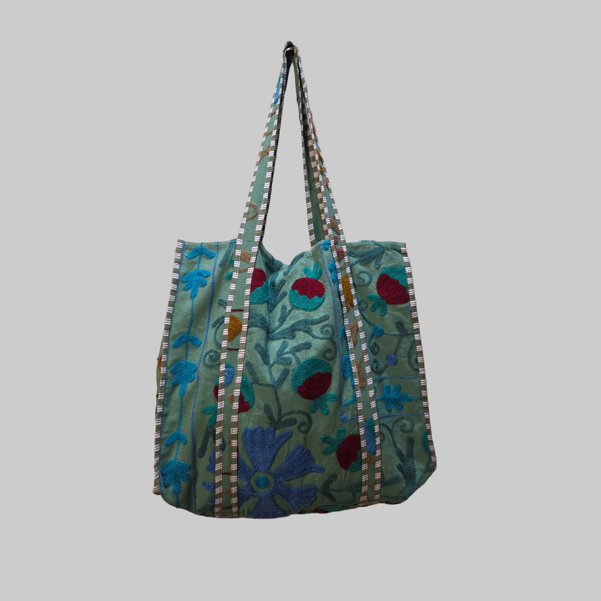 Cotton Suzani tote bag is a bag made from suzani textiles, which are traditional,  intricated embroidered fabrics from Central Asia