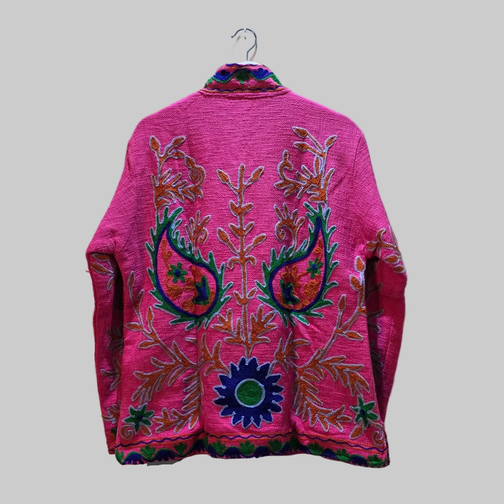 A suzani jacket is a type of garment made from suzani textiles, which are traditional, intricated embroidered fabrics from Central Asia
