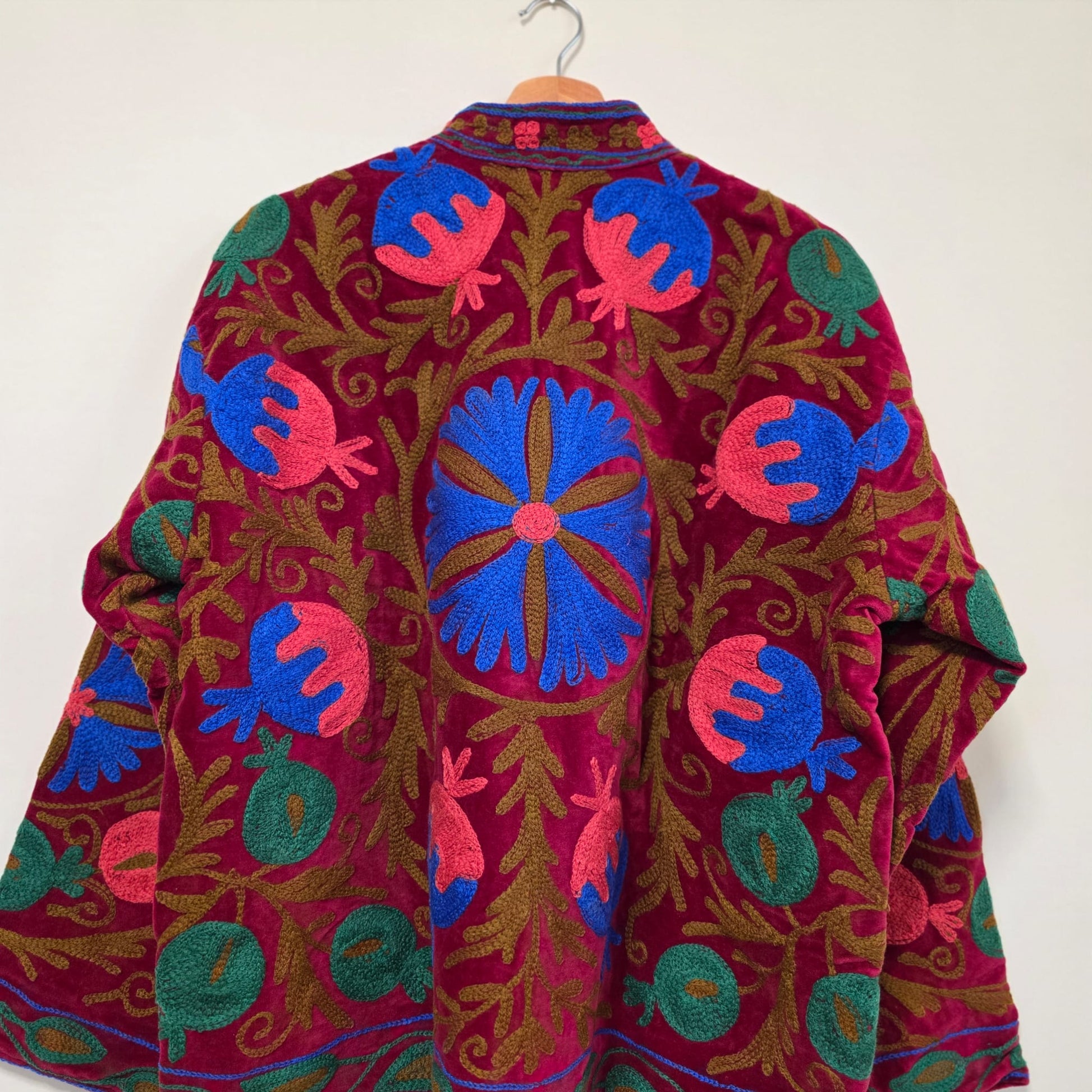 A suzani jacket is a type of garment made from suzani textiles, which are traditional, intricated embroidered fabrics from Central Asia