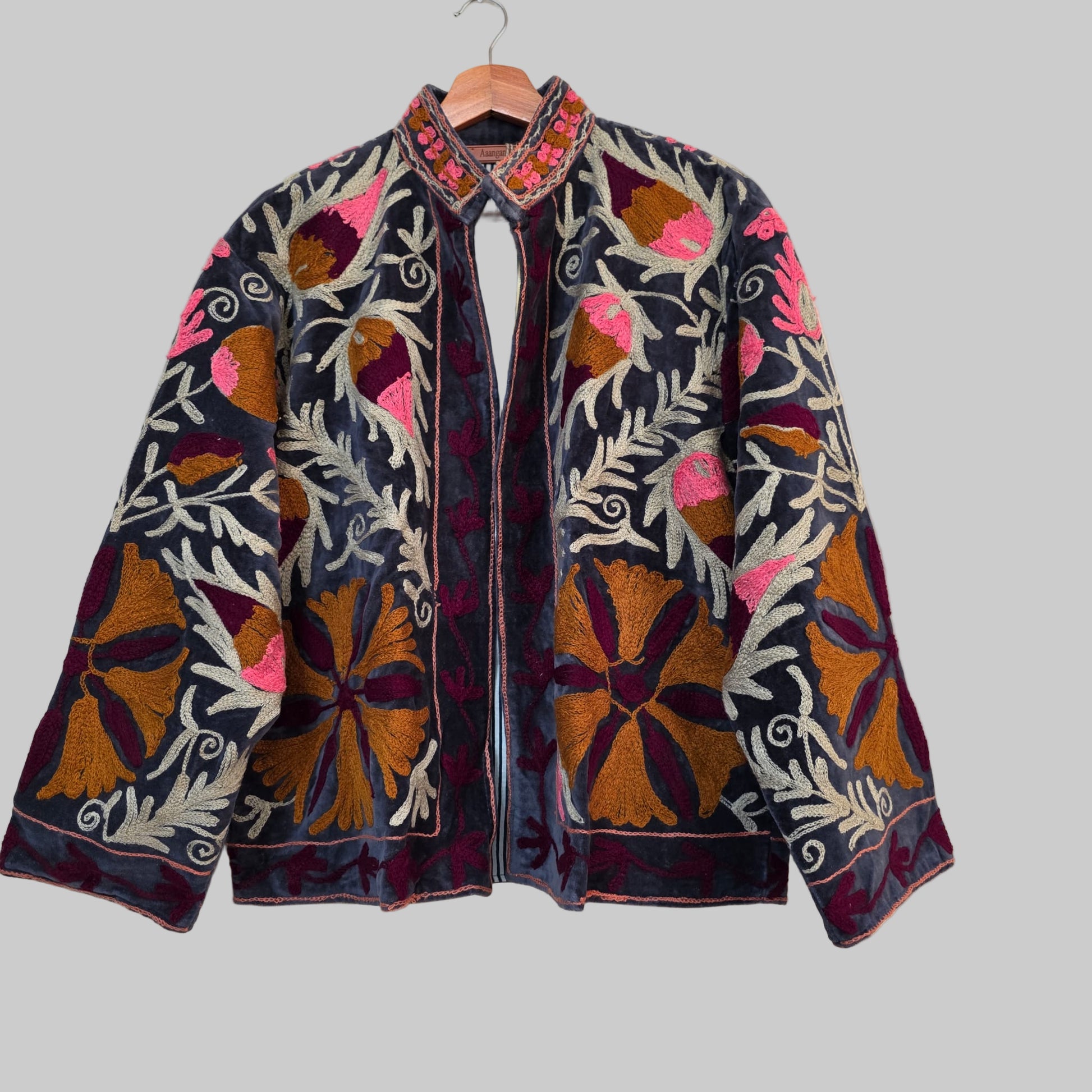 A suzani jacket is a type of garment made from suzani textiles, which are traditional,  intricated embroidered fabrics from Central Asia